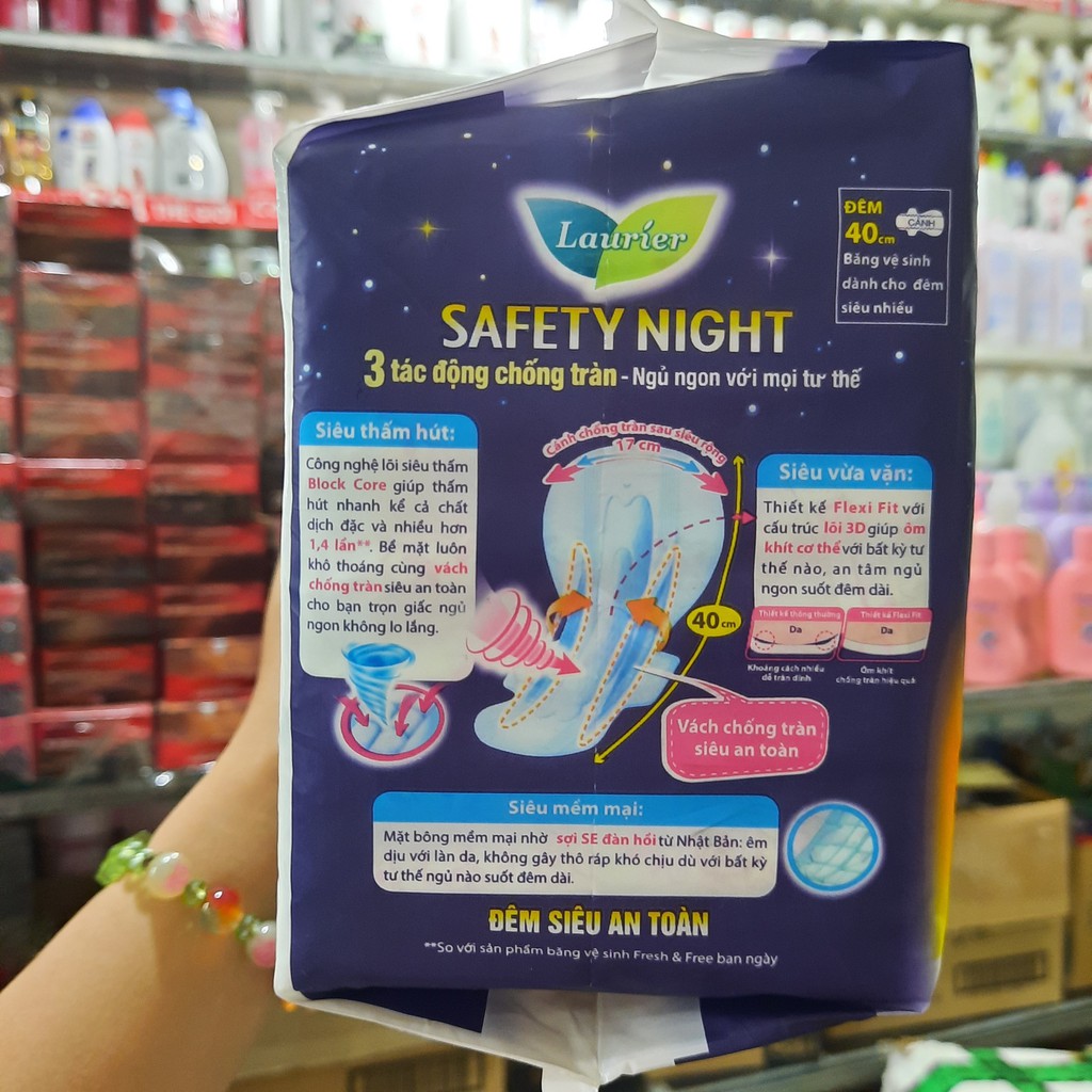 Sức Khỏe > Chăm sóc cá nhân > Chăm sóc phụ nữ > Băng vệ sinh có cánh & không cánh || Băng vệ sinh ban đêm Laurier Fresh and Free siêu chống tràn 8 miếng 40cm