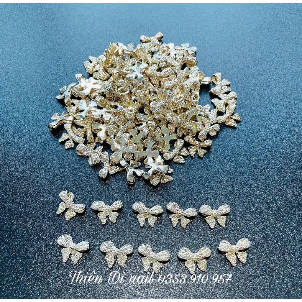 Charm nail là sản phẩm được tạo ra bằng inox không rỉ sét . được nhuộm lên màu vàng hoặc trắng . đính lên những viên kim cương nhựa cực kì sáng và sang chảnh . charm có rất nhiều kiểu dáng và có 2 màu sắc cho khách chọn lựa . không lỗi mốt và rất tiện dùng