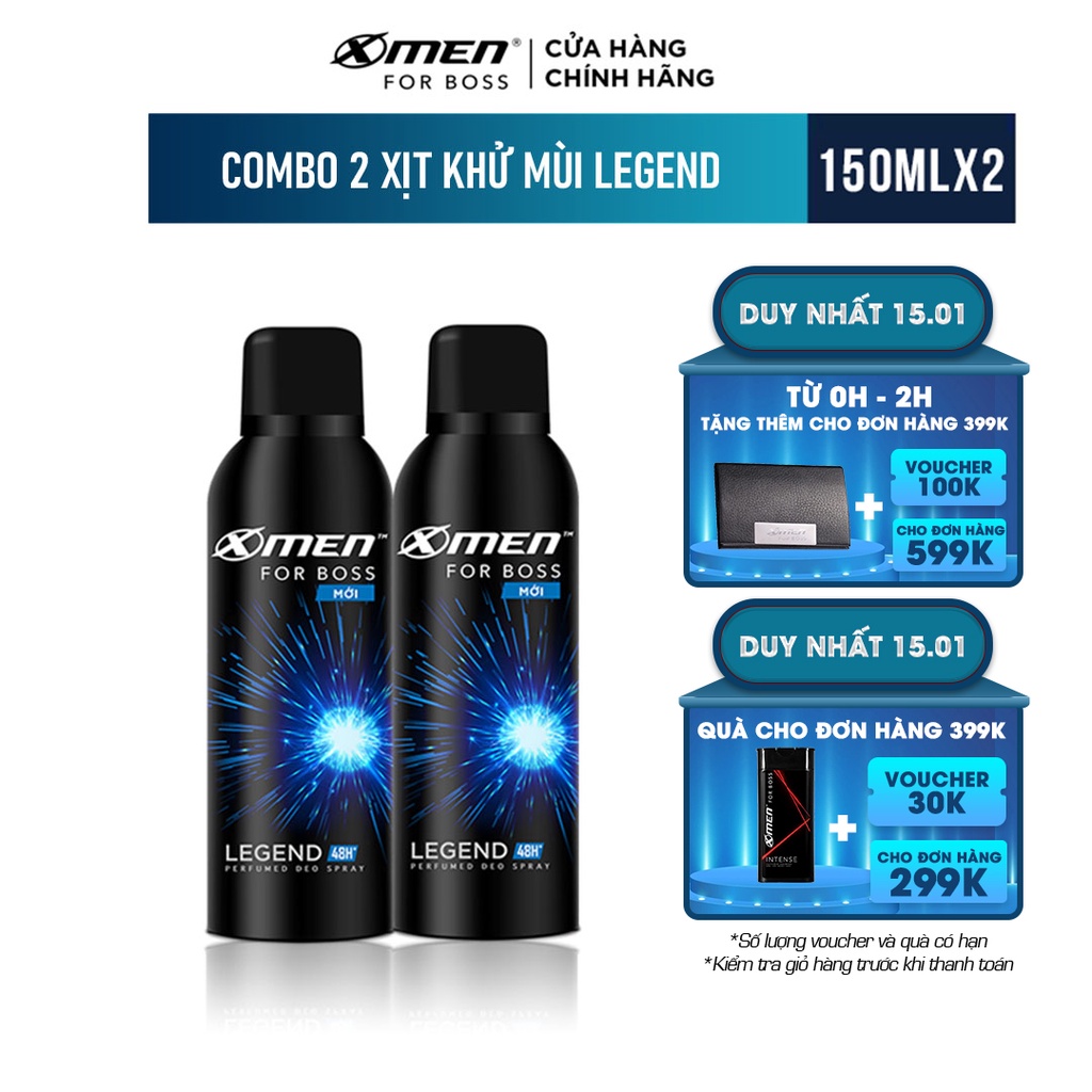 Giới thiệu Combo 2 chai xịt khử mùi X-men For Boss 150ml - Legend