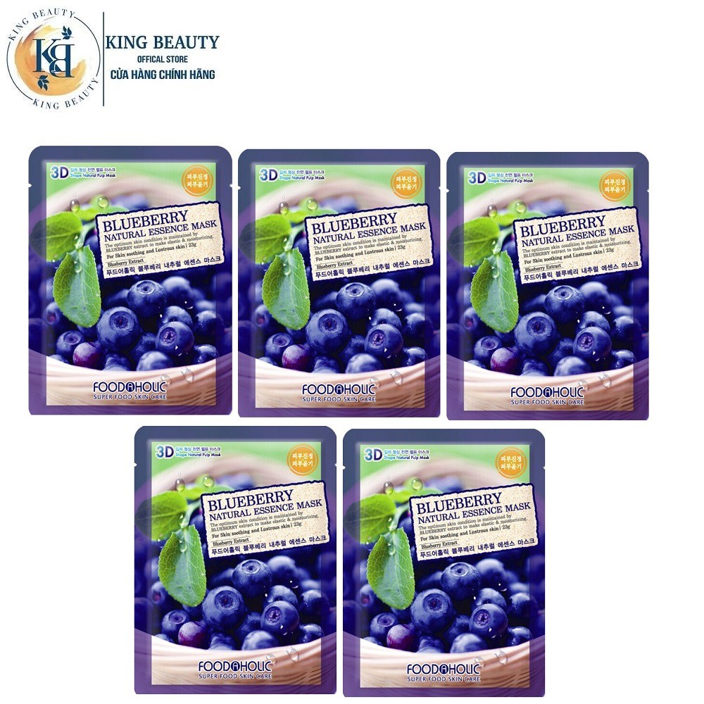 Giới thiệu Combo 5 Mặt Nạ Dưỡng Trắng Da Chiết Xuất Việt Quất 3D Foodaholic Natural Blueberry Essence Mask 23ml x 5