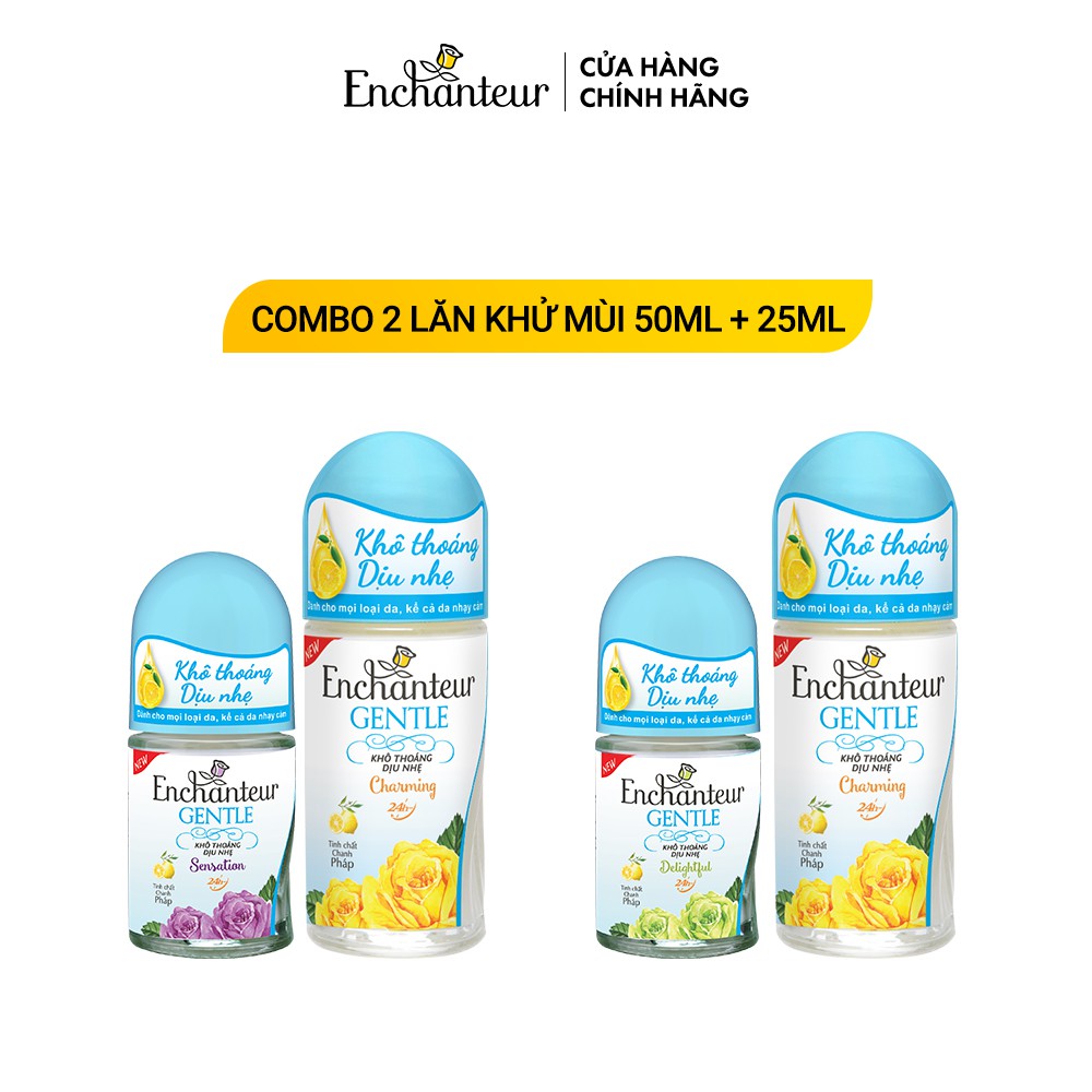 Giới thiệu Combo Lăn khử mùi Enchanteur Gentle Charming 50ml và Gentle Sensation/ Delightful 25ml