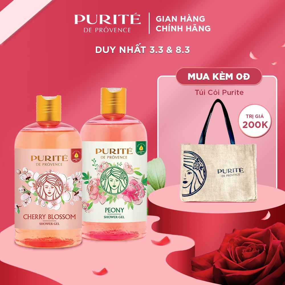 Giới thiệu Combo Sữa Tắm Sáng Mịn Hoa Anh Đào Purité 500ml/chai + Sữa Tắm Thiên Nhiên Hoa Mẫu Đơn Purité 500ml/chai