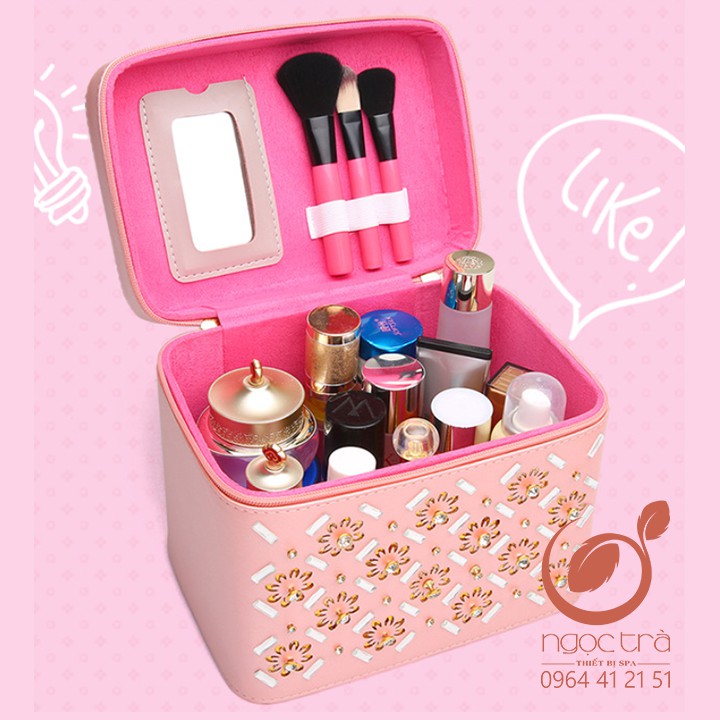 Giới thiệu Cốp mỹ phẩm đính đá, kèm gương, giá cọ, 1 ngăn trong cốp