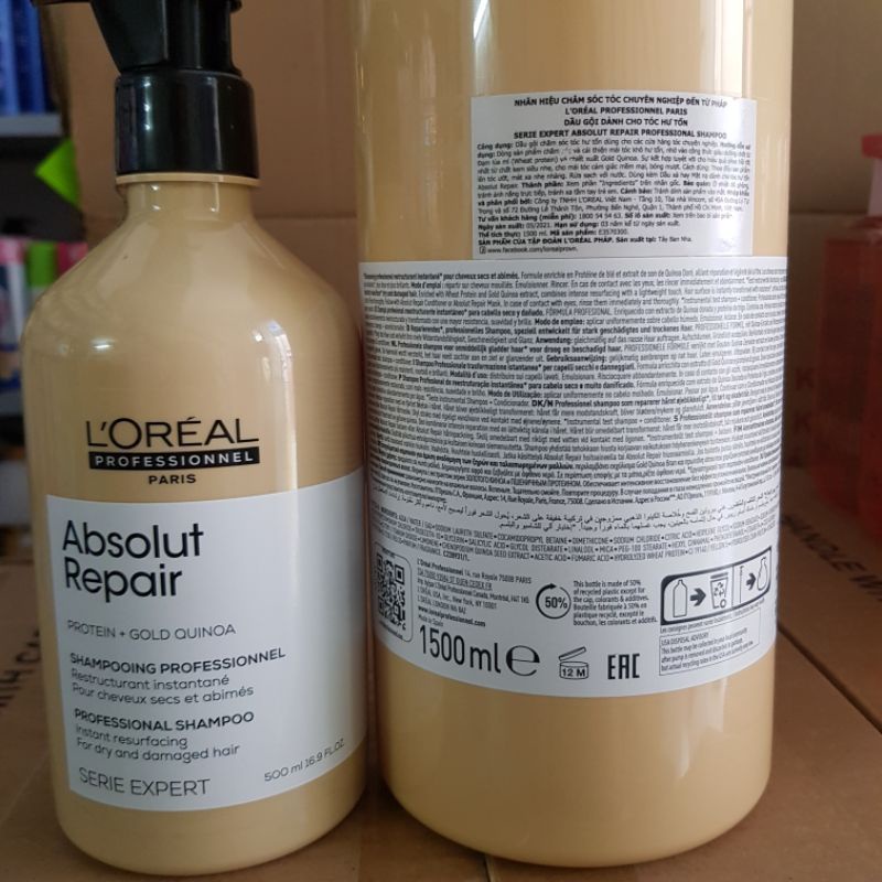 Giới thiệu Dầu gội phục hồi tóc hư tổn L’Oréal Absolut Repair Gold Quinoa+ Protein 500ml 1000ml
