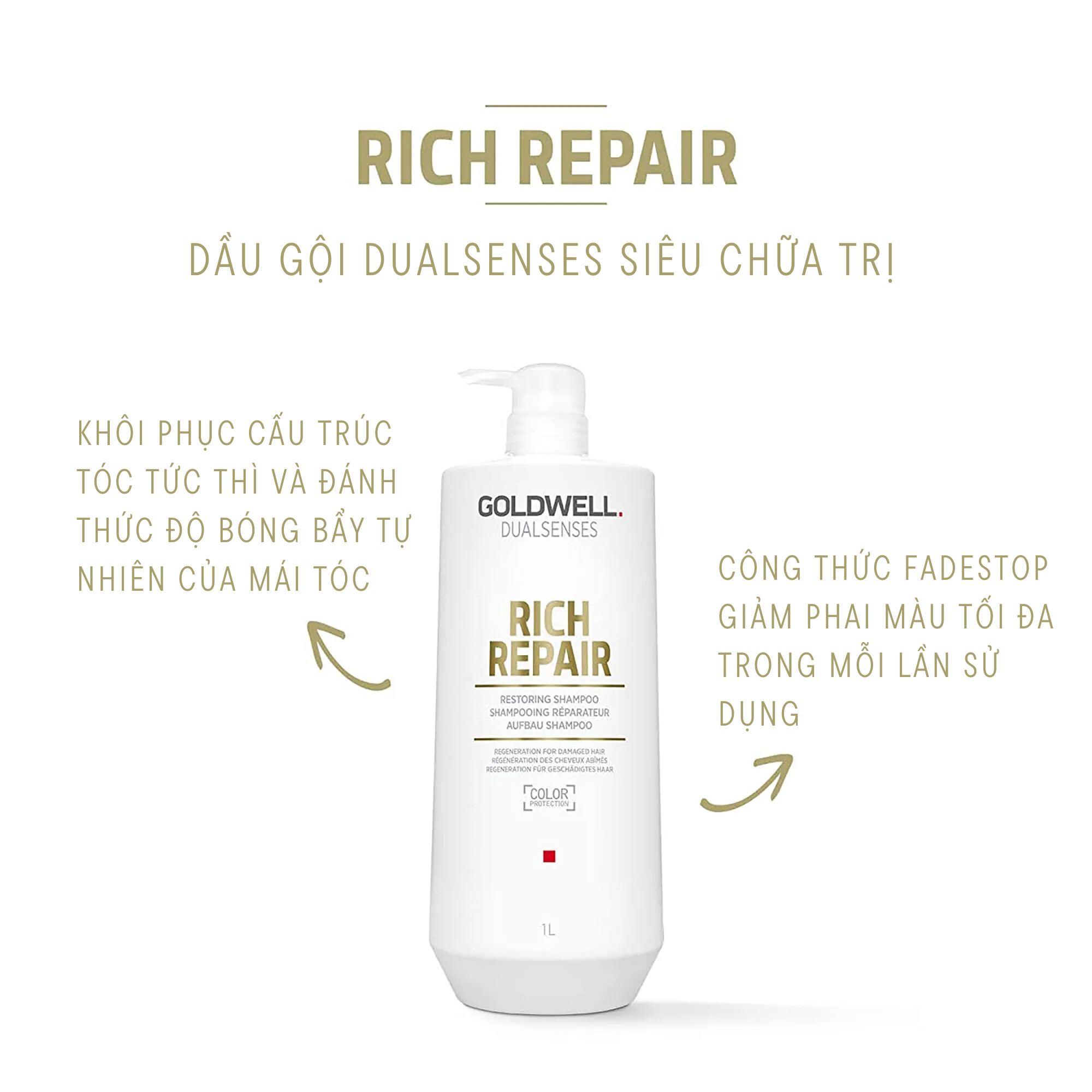 Dầu Gội Phục Hồi Tóc Hư Tổn Goldwell Rich Repair Phục Hồi Tóc Khô Xơ, Hư Tổn, Chẻ Ngọn Lên Tới 98%