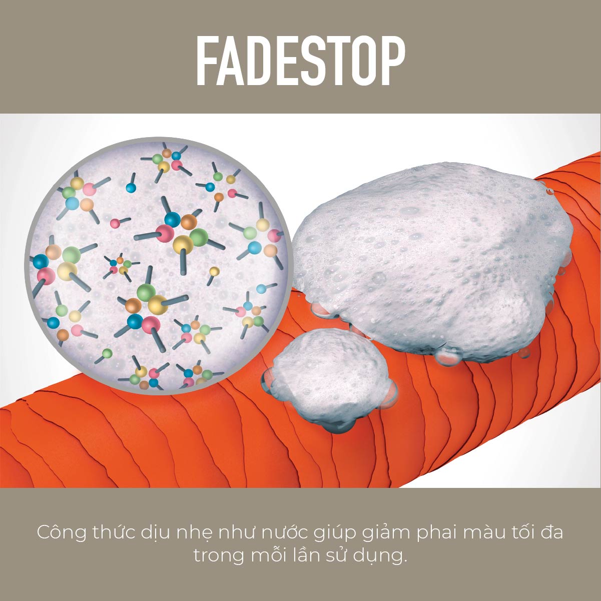 - Với công thức FadeStop dịu nhẹ như nước, dầu gội Goldwell giúp giảm phai màu tối đa trong mỗi lần sử dụng.