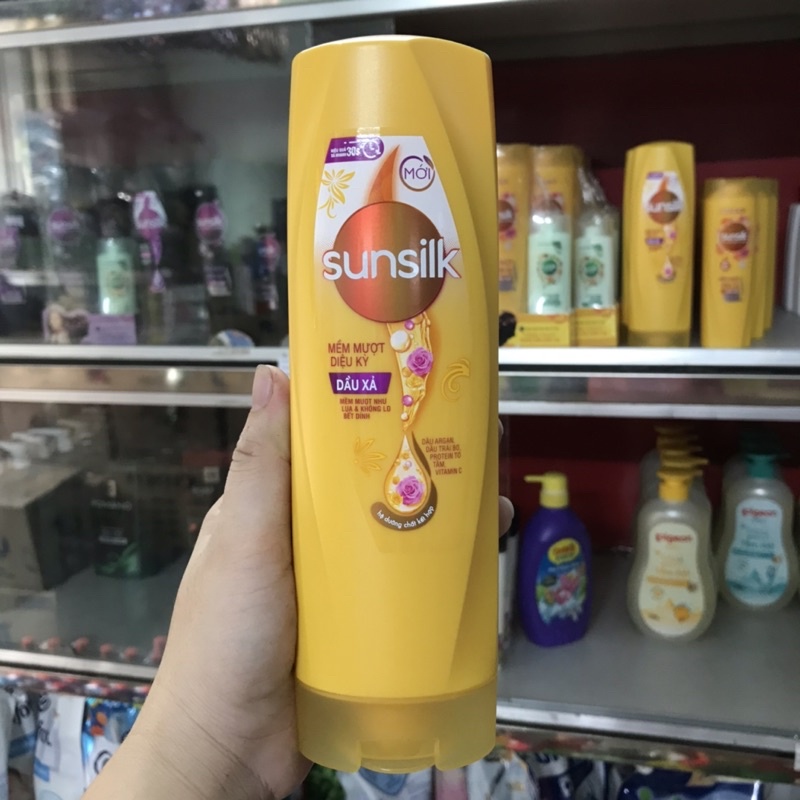 1. Dầu xả Sunsilk mềm mượt diệu kỳ (vàng) với công thức mới giúp xả tóc nhanh hơn, nuôi dưỡng mái tóc suôn mượt hơn so với chỉ dùng dầu gội đơn thuần ! Công thức mới không nhờn rít giúp dễ dàng xả sạch cùng tinh chất bơ và tinh dầu từ tự nhiên cho mái tóc siêu mềm mượt và tỏa hương sau mỗi lần chạm trong 48 giờ.