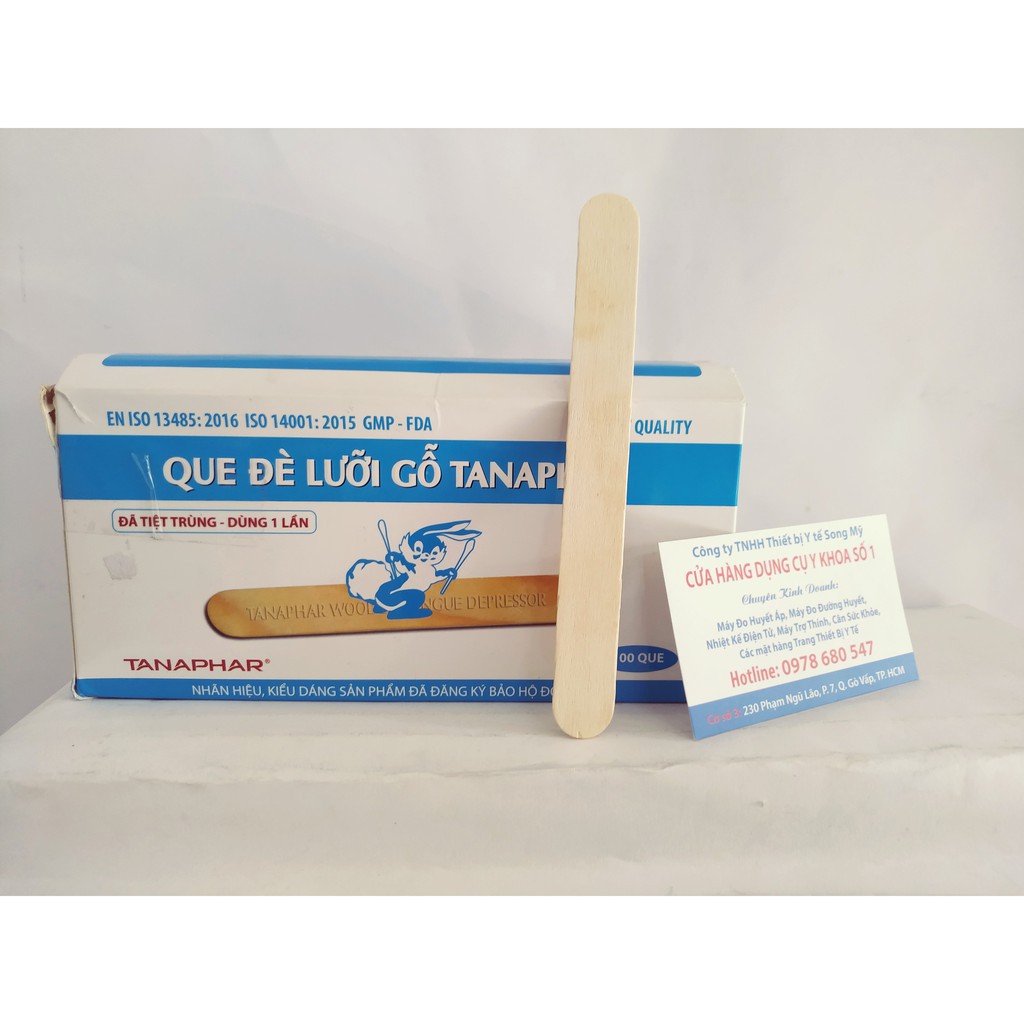 Đè lưỡi gỗ đã tiệt trùng hộp 100 cây dùng để khâm bệnh tai mũi họng hoặc phục vụ những công việc hạn chế tiếp xúc trực tiếp với mầm bệnh.