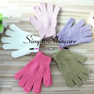 Găng tay tắm được dệt từ những sợi chỉ nilon nhám, có độ co giãn tốt, không gây kích ứng da và trầy xước da khi sử dụng. Sản phẩm có khả năng lấy đi những tế bào chết trên da khi tắm, tạo bọt mềm cho sữa tắm và dùng thay thế bông tắm.
