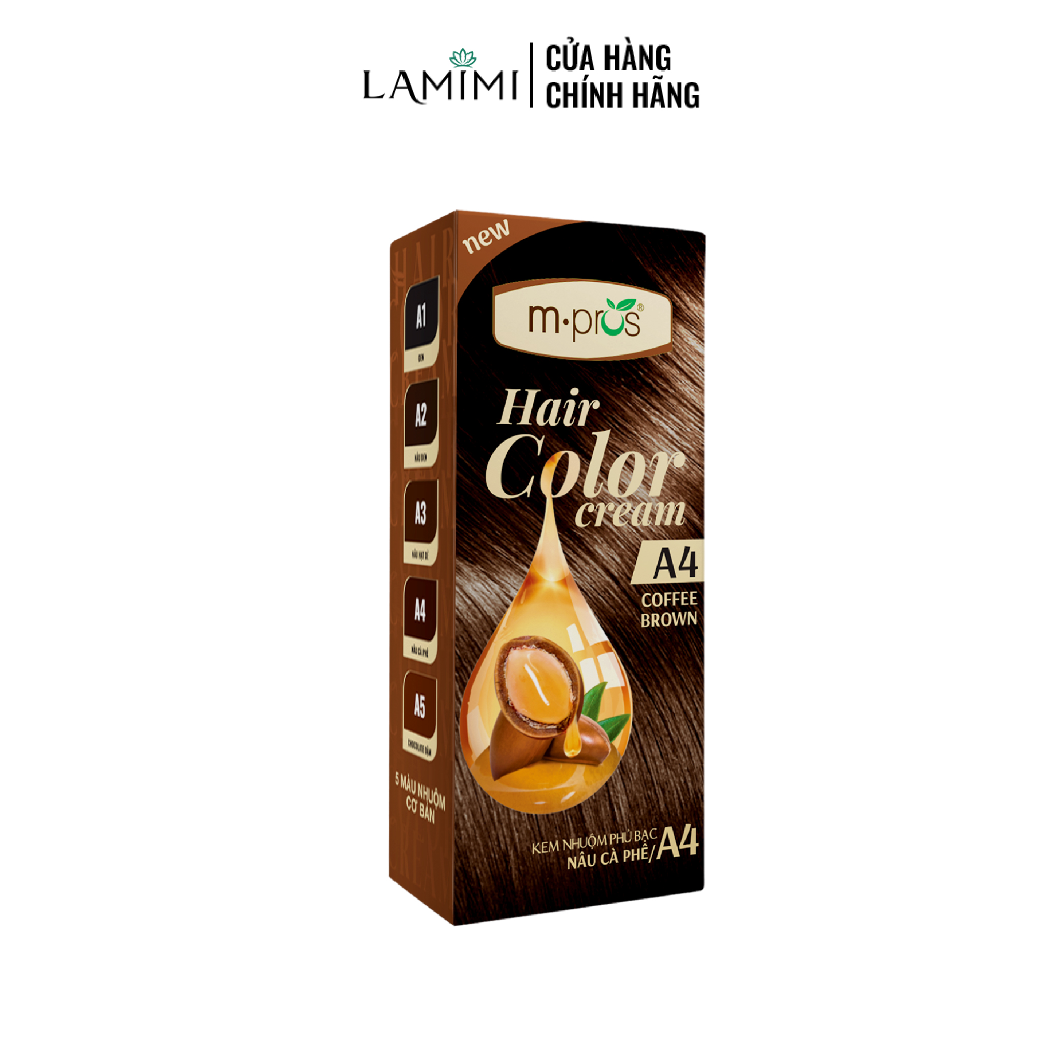- Màu nhuộm lên đều đẹp, tự nhiên. Có 5 gam màu cho bạn lựa chọn: Đen, Nâu đen, Nâu hạt dẻ, Nâu cà phê, Nâu Mocha.