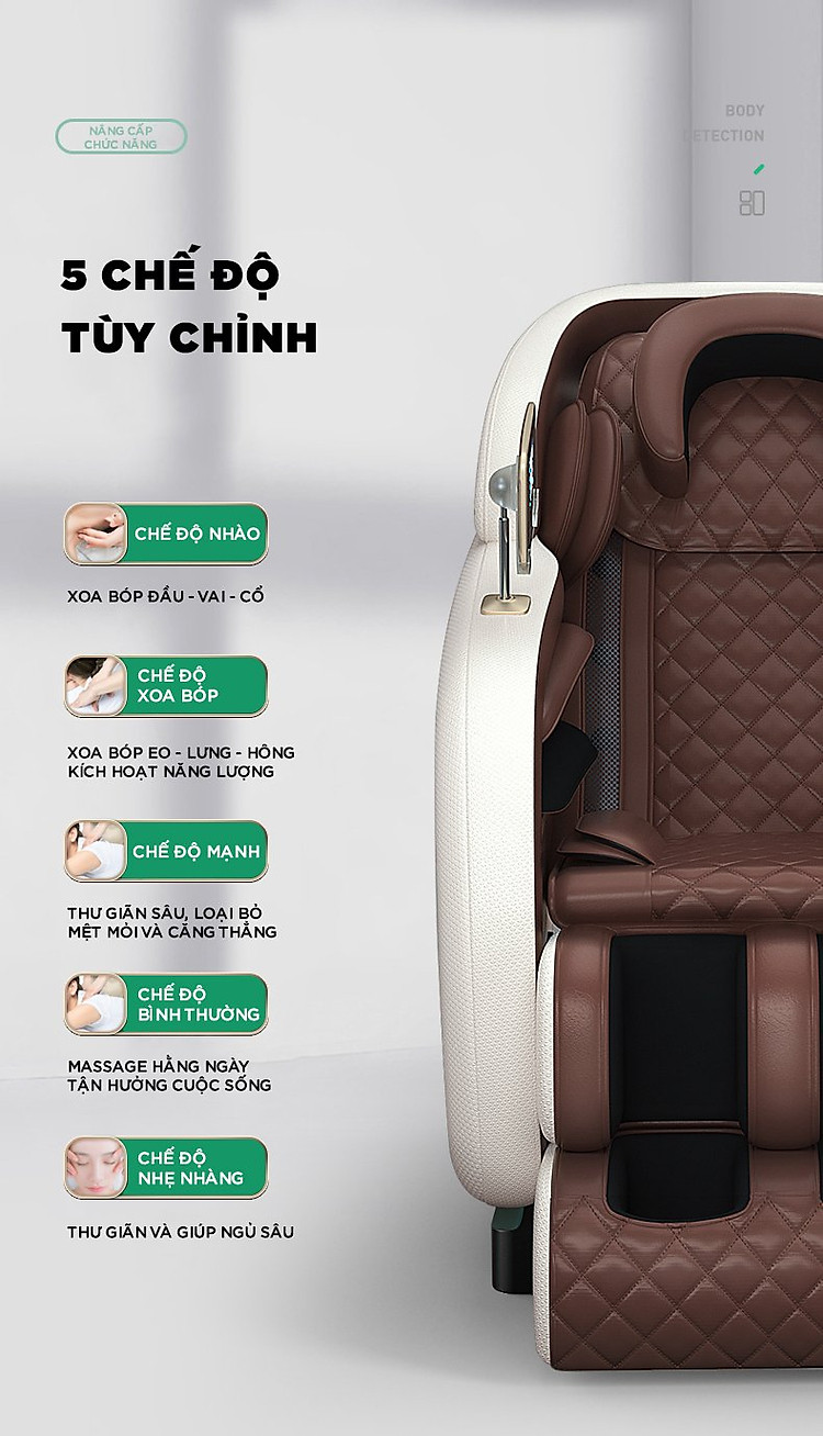 - Thiết Kế Sang Trọng: KINGEDO LUX-E5 được nhà sản xuất thiết kế với chất liệu da cao cấp, màu sắc trang nhã, nhẹ nhàng mang đến cho bạn một sản phẩm chăm sóc sức khỏe cực kỳ sang trọng, tô điểm thêm cho không gian gia đình bạn.