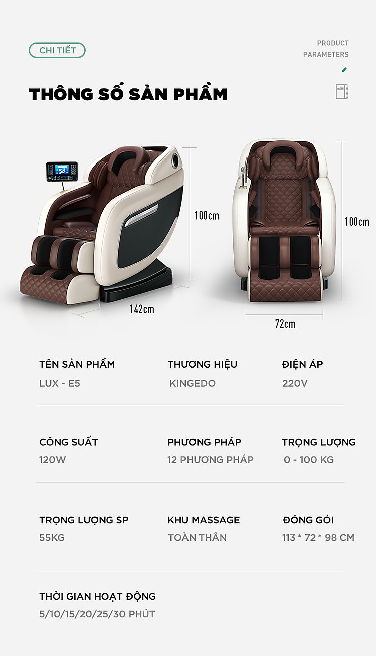 Thông Tin Ghế Massage Toàn Thân 3D KINGEDO LUX-E5: