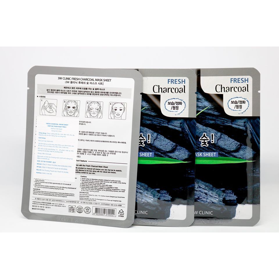 - Mặt nạ than hoạt tính 3W Clinic Fresh Charcoal chiết xuất từ bột than hoạt tính kết cấu rỗng làm sạch sâu bã nhờn cùng lượng dầu dư thừa, ngăn chặn sự hình thành mụn cám, mụn đầu đen, mang đến cho bạn làn da chắc khỏe từ bên trong.