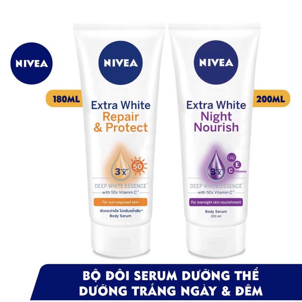 Bộ đôi Tinh chất dưỡng thể NIVEA dưỡng trắng chống nắng, phục hồi ngày & đêm - 88314+89122, gồm