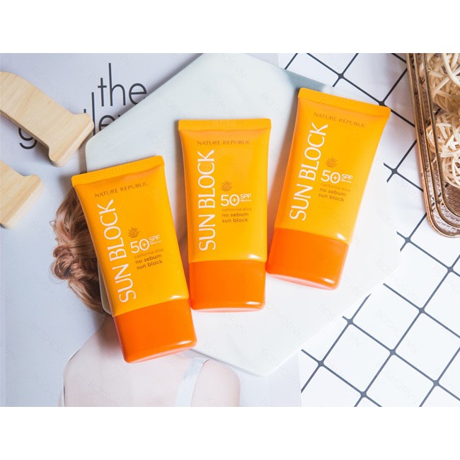 - Kem Chống Nắng Daily Sun Block Nature Republic California Aloe SPF50+ 57ml được chiết xuất từ nha đam California, cung cấp độ ẩm dồi dào cho làn da và giúp làm dịu làn da mẫn cảm dưới ánh nắng mặt trời.