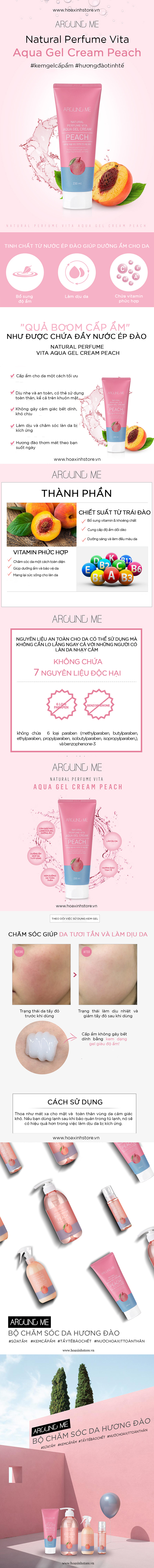 Kem dưỡng ẩm AROUND ME dạng Gel chiết xuất trái Đào - Vita Aqua Gel Cream Peach 230ml