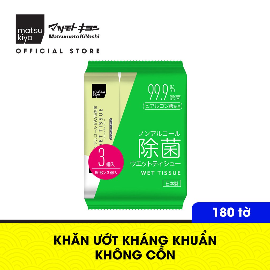 Khăn ướt kháng khuẩn không chứa cồn matsukiyo 180 tờ (60 tờ x 3 xấp)