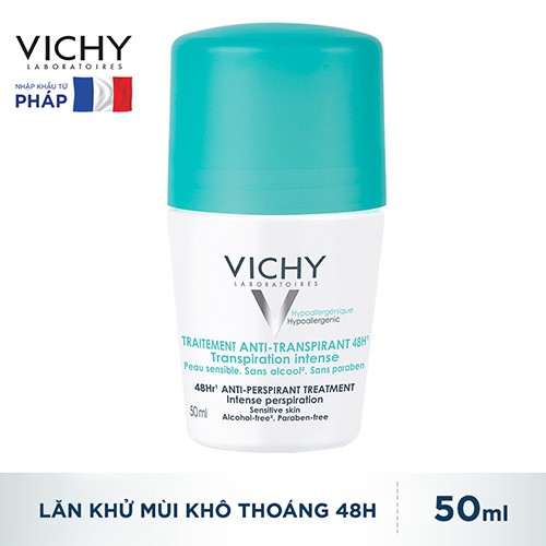 Lăn khử mùi khô thoáng vùng da dưới cánh tay 48h Vichy Traitement Anti-Transpirant 50ml với công thức phù hợp với làn da nhạy cảm, giúp hạn chế và kiểm soát lượng mồ hôi hằng ngày, dưỡng da dưới cánh tay mềm mịn, khô thoáng suốt 48h.