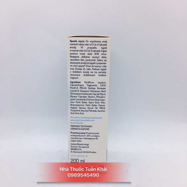 Giới thiệu Latopic Bath Emulsion Nhũ Tương Tắm Dành Cho Da Dị Ứng Kích Ứng - 200ml