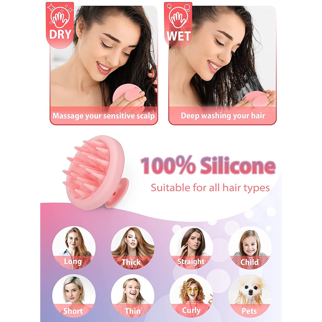 👉Thay vì những chiếc bàn chải gội đầu rỗng với vỏ nhựa, chiếc bàn chải chăm sóc tóc nâng cấp năm 2021 này được làm bằng silicone siêu mềm nguyên chất một đầu.