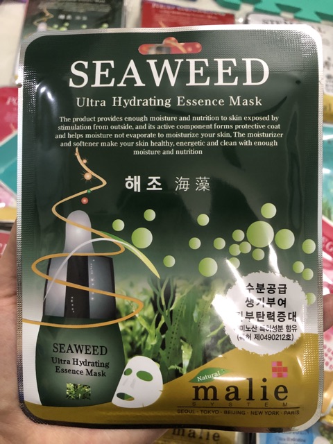 Mặt nạ Malie Seaweed với chiết xuất từ Rong Biển chứa thành phần dinh dưỡng giàu Protein, Canxi, Kali, Magie, Vitamin A, E cùng các khoáng chất vi lượng,…Giúp da có đủ dưỡng chất chống lại những tác hại của ánh nắng mặt trời và sự ô nhiễm của môi trường.