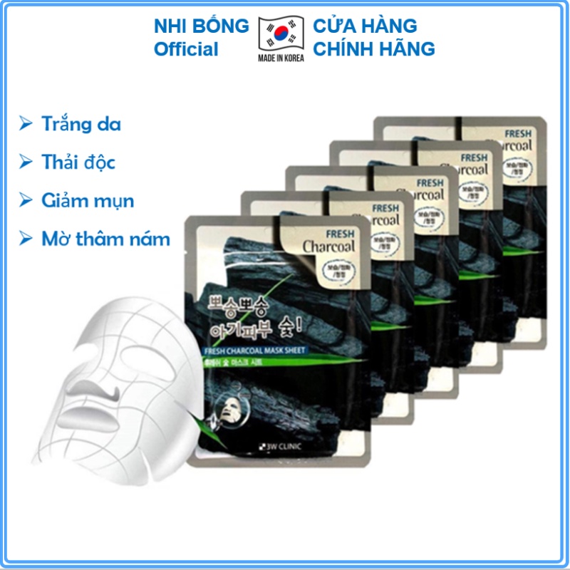 Giới thiệu Mặt nạ than hoạt tính - Mặt nạ giấy dưỡng trắng da 3W Clinic Hàn Quốc [Combo 10 Túi / Hàng Nhập Khẩu]
