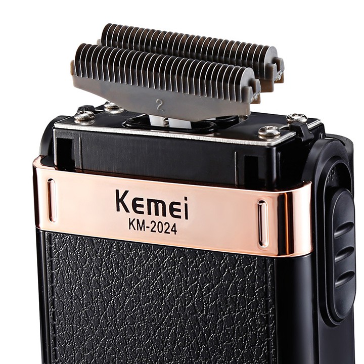 Máy cạo khô KEMEI KM 2024 Mang dáng vẻ lịch lãm sang trọng với lớp bọc da cao cấp ở mặt trước.