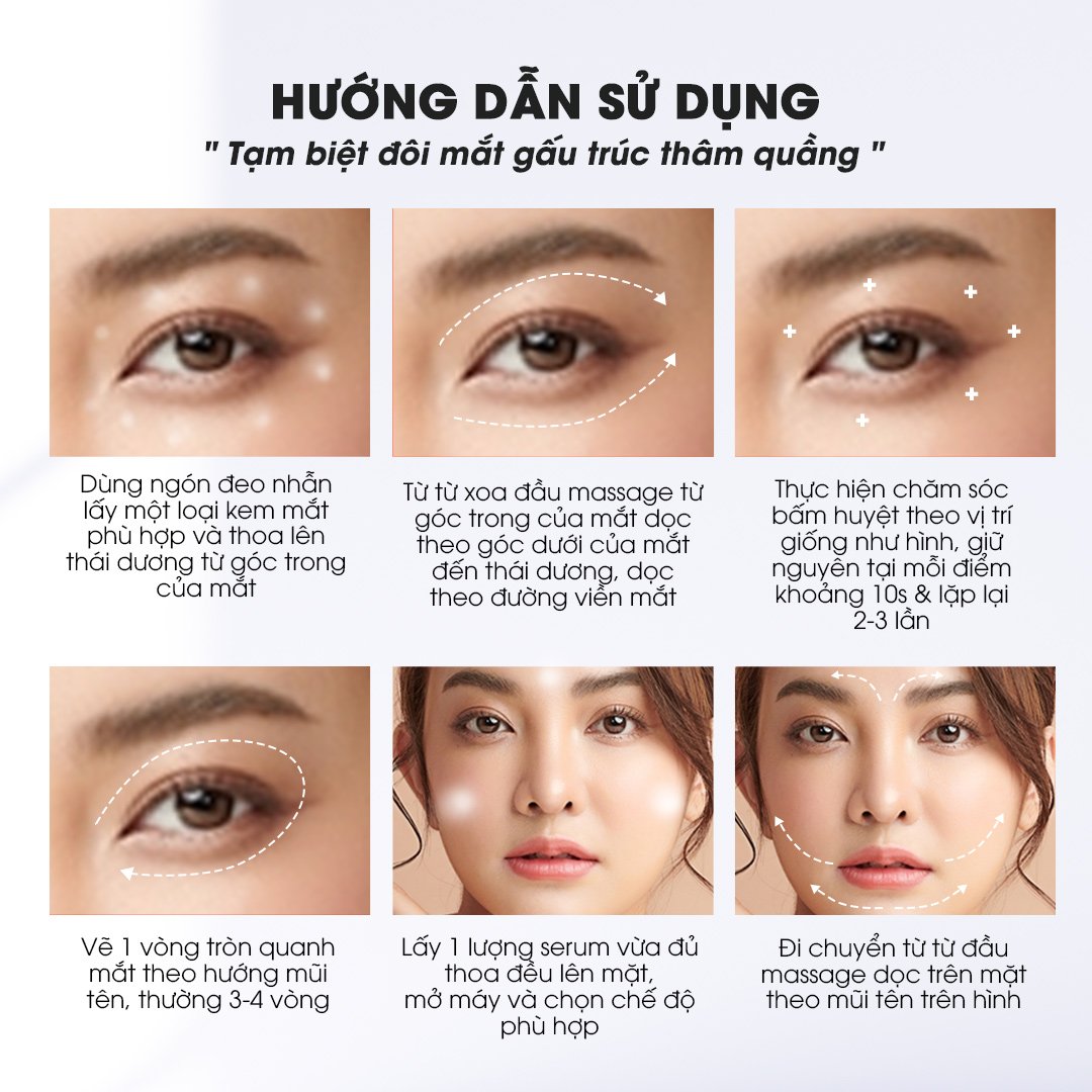 Lời khuyên: Tốt hơn hết bạn nên sử dụng 2-5 phút cho mỗi bên mắt. Mỗi chế độ là 2-5 phút, nếu không thực hiện bất kỳ thao tác nào sau 5 phút, thiết bị sẽ ngừng hoạt động ở chế độ chờ 30 giây rồi tắt.