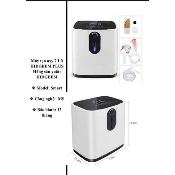 Máy tạo oxy HIDGEEM PLUS - Sản phẩm chính hãng công nghệ Mỹ - Bảo hành chính hãng 12 Tháng