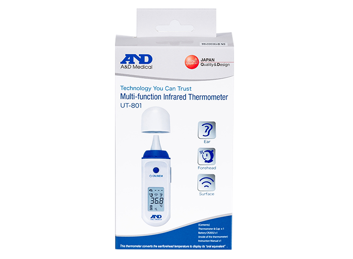 Nhiệt kế hồng ngoại đo tai trán AND UT-801 là dòng nhiệt kế bán chạy nhất tại Nhật. Nhiệt kế hồng ngoại AND UT-801 là sản phẩm được nghiên cứu và chế tạo từ công nghệ tiên tiến nhất hiện nay, công nghệ này cho phép đo nhiệt độ cách xa vị trí trán hay thái dương 3-5cm. Kết quả đo nhanh, chính xác chỉ sau 1 giây mà không cần tiếp xúc. Một số đặc điểm nổi bật của sản phẩm như: