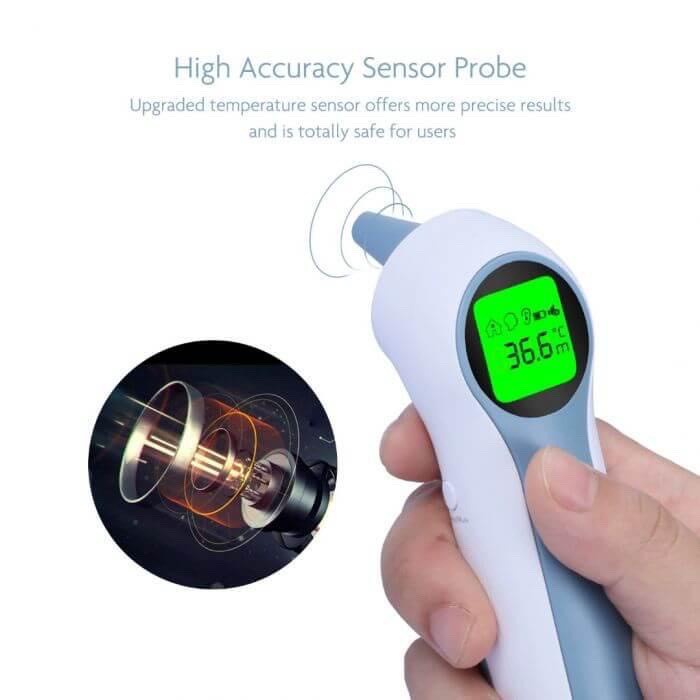 Bạn có thể nhanh chóng có được kết quả đo sau 1 giây thông qua màn hình điện tử. Đầu đọc cảm biến hồng ngoại mới nhất cho độ chính xác cao, phạm vi đo của nhiệt kế ở chế độ trán là từ 0 độ C - 100 độ C.