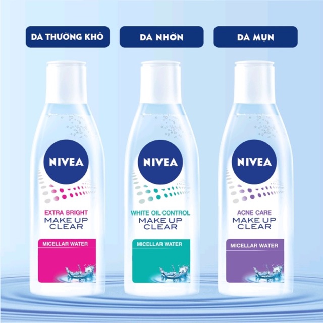 Nước tẩy trang không chứa cồn Nivea Make Up Clear Micellar Water với công nghệ Mi-xen có kết cấu trong veo như nước nhưng sức mạnh làm sạch các lớp trang điểm thật sự ưu việt.