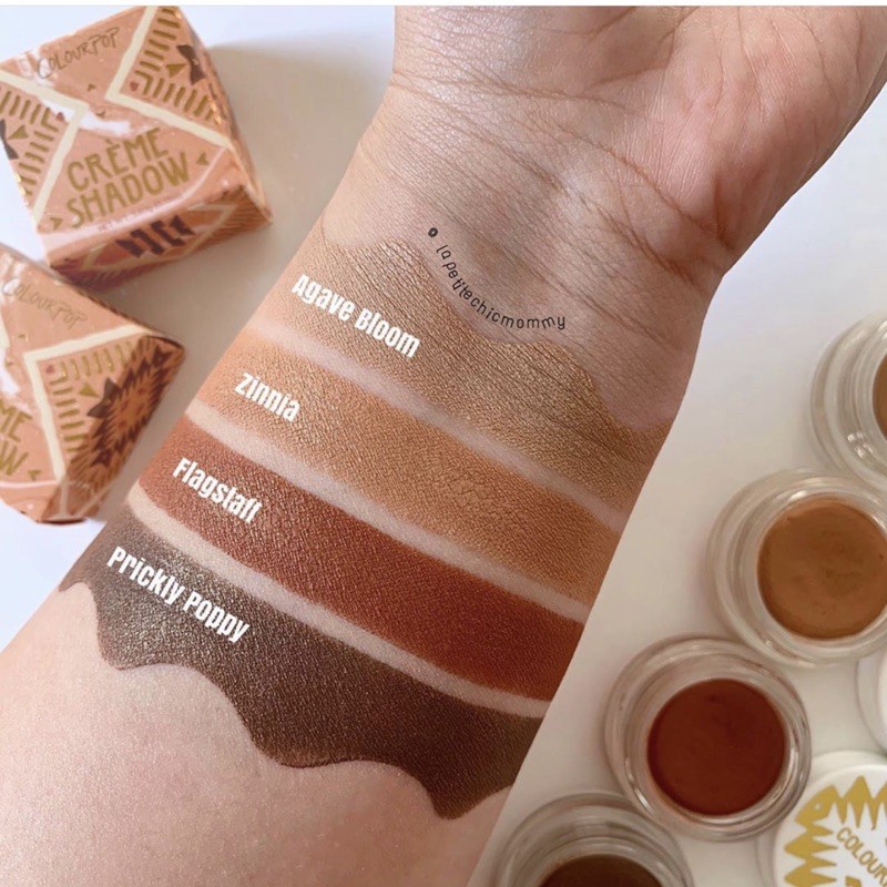 ☘️ Flagstaff màu nâu cam, phù hợp với mọi makeup look, rất tiện đánh hàng ngày nữa ạ. Chất kem tưởng chừng là bết và khó tán ư? không đâu nhé, công thức của Colourpop có chất kem mềm, tiệp da và lâu trôi, chống nước, chống tình trạng phấn ăn vào mí mắt vón lại như phấn thông thường. Hai em này đều có chút nhũ nhẹ, đánh ban ngày sáng vừa phải mà vẫn nổi bật xinh xỉu luôn các cậu ơi