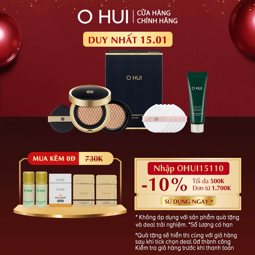 Set Phấn nước che khuyến điểm dưỡng trắng chống lão hóa O HUI Ultimate Cover Cushion Satin Finish- Màu số 01