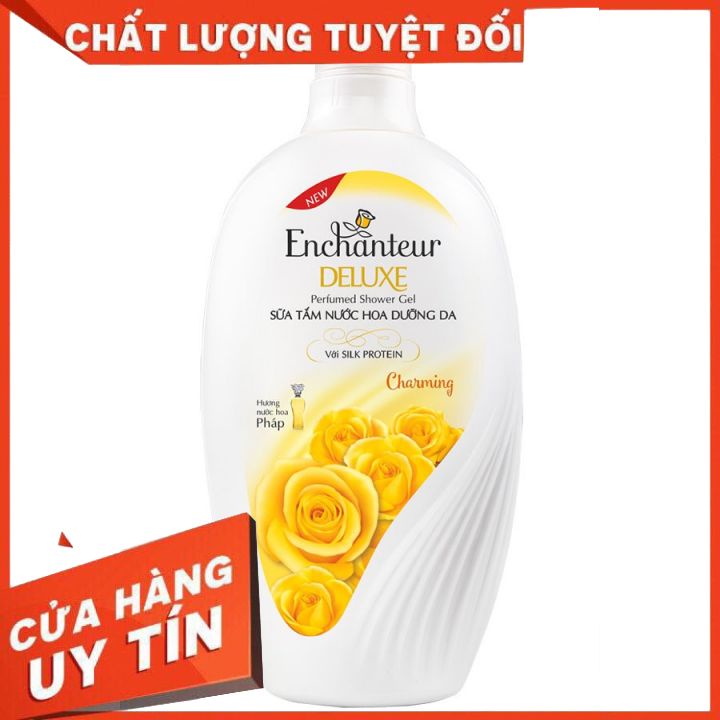 Hương nước hoa Pháp quyến rũ .Da trắng sáng, mịn màng, tươi trẻDưỡng chất kem sữa tươi, vitamin B3, Phù hợp với mọi loại da, Lưu hương dài lâu suốt cả ngày. Sữa tắm Enchanteur Charming, magic, romantic.. với thành phần giàu dưỡng chất Silk Protein làm sạch da và dưỡng ẩm, giúp da mềm mịn và tươi trẻ.Đặc biệt, hướng nước hoa độc đáo từ Pháp không chỉ giúp bạn gái tự tin và nổi bật với làn da trắng mịn, rạng rỡ mà còn thêm quyến rũ, duyên dáng