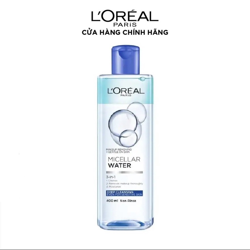 Giới thiệu [ TẶNG BÔNG TẨY TRANG ] Nước tẩy trang cho mọi loại da L'Oreal Paris 3-in-1 Micellar Water 400ml