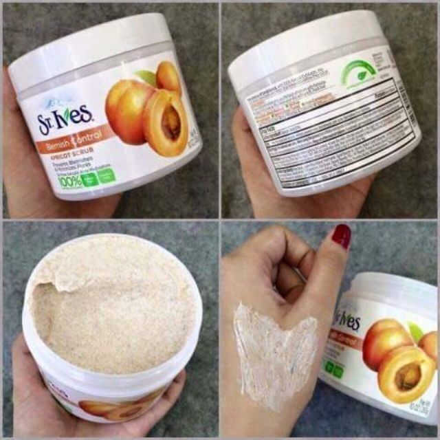 - tẩy da chết body ST.Ives Apricot Scrub với thành phần 100% từ thiên nhiên, giúp làm sạch sâu lỗ chân lông, ngay lập tức để lại làn da mịn màng và sáng.