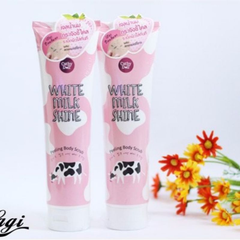 Tẩy tế bào chết Bò Sữa - White Milk Shine Cathy Doll - Thái Lan giúp lấy đi lớp tế bào sần sùi trên da, là bước cơ bản để có làn da trắng sáng và mịn màng.