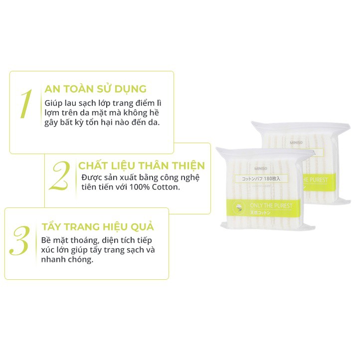 Giới thiệu Bông Tẩy Trang MINISO Nhật Bản Cotton Mềm Mại GÓI 180 MIẾNG - Sarah Beaute MP33