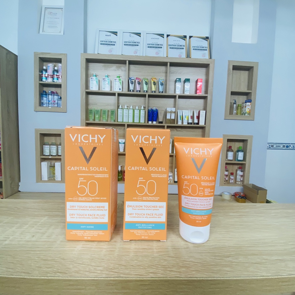 Giới thiệu [Có Tem Phụ ] Kem chống nắng Vichy không nhờn rít SPF 50 UVA +UVB Capital Soleil Mattifying Dry Touch Face Fluid 5