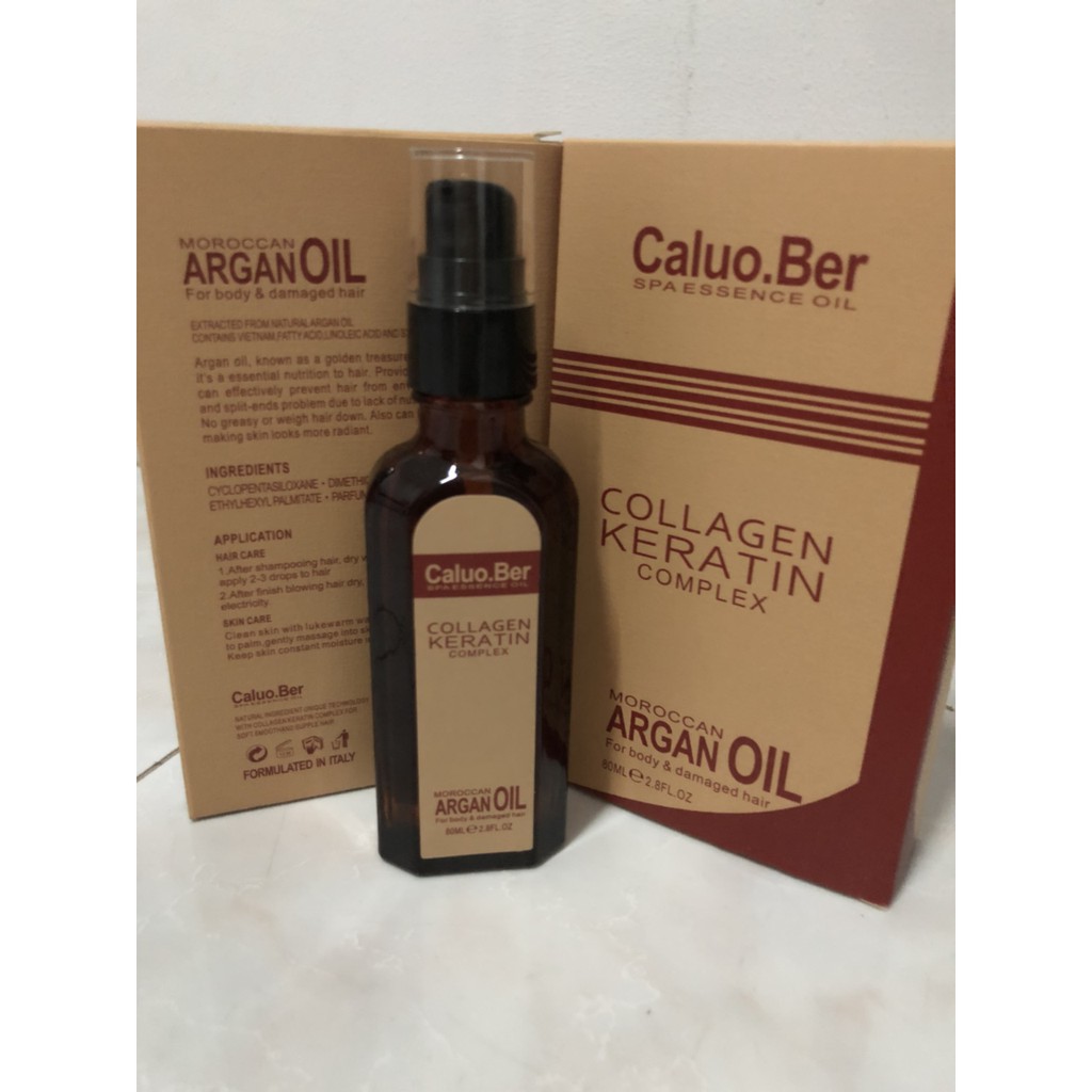 Giới thiệu Tinh dầu Caluo.Ber Argan Oil Moroccan Collagen Keratin Complex dưỡng tóc bóng mượt 80ml (Italy)