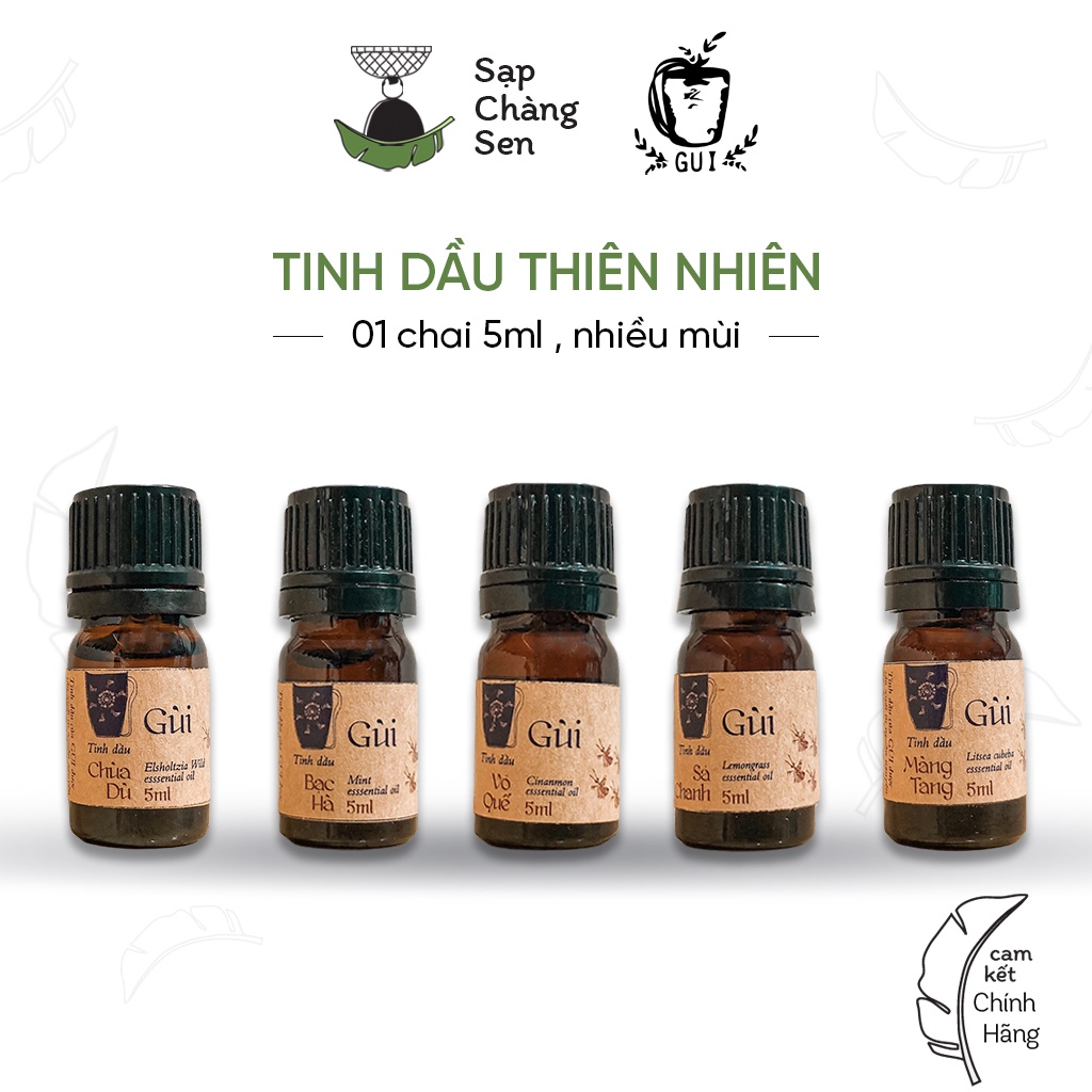 Giới thiệu Tinh dầu thiên nhiên (Gùi) - 5ml | sả chanh, màng tang, bạc hà, chùa dù, quế