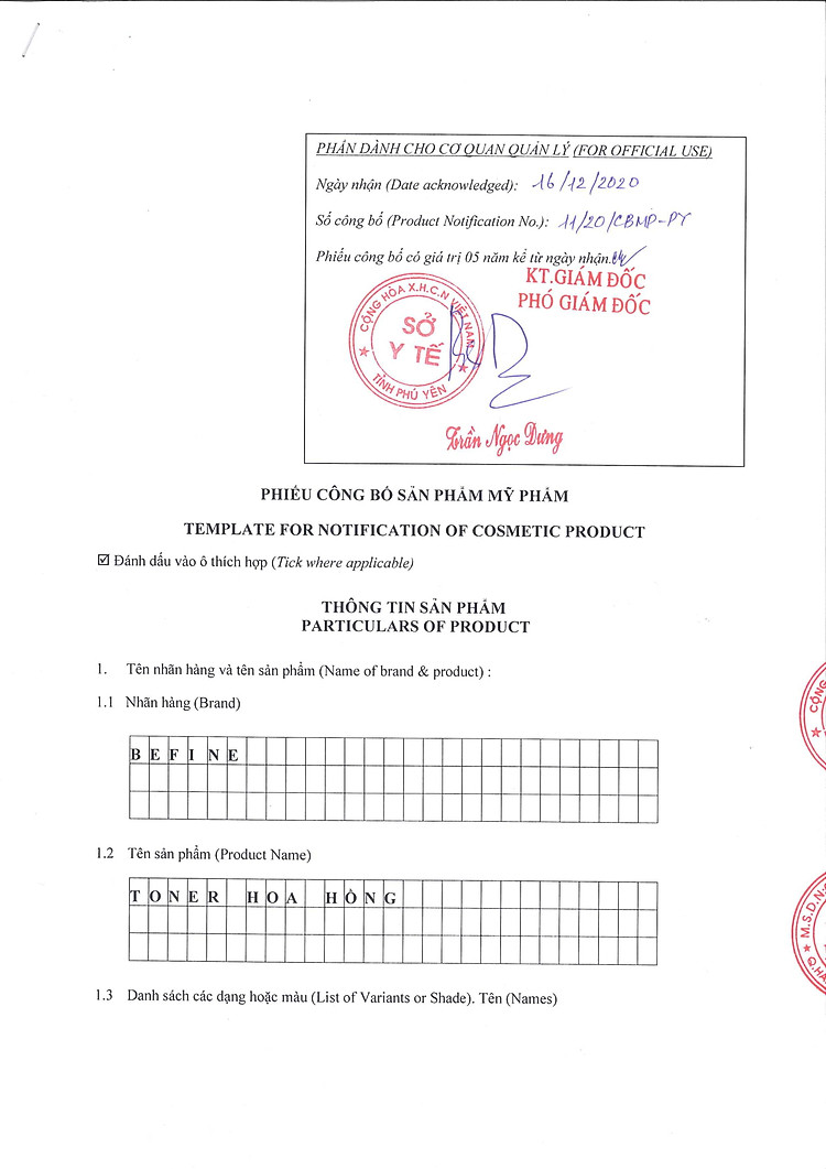 SỐ CÔNG BỐ MỸ PHẨM: 11/20CBMP-PY