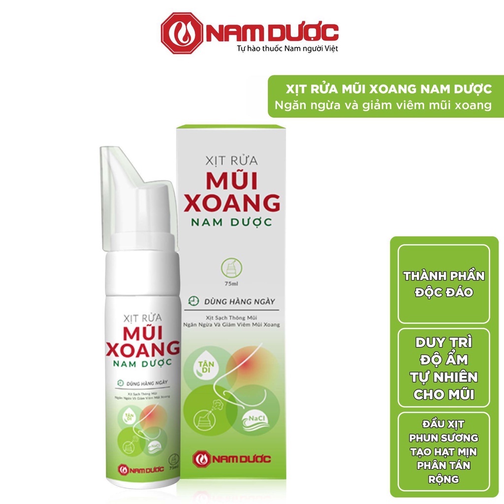 Giới thiệu Xịt rửa mũi xoang Nam Dược chai 75ml muối biển và thảo dược giúp xịt sạch, thông mũi, ngăn ngừa và giảm viêm mũi xoang