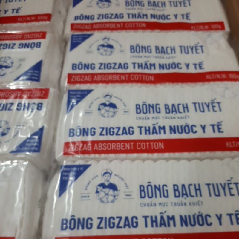Bông y tế thấm nước, tẩy trang zigzag Bạch Tuyết (100g)